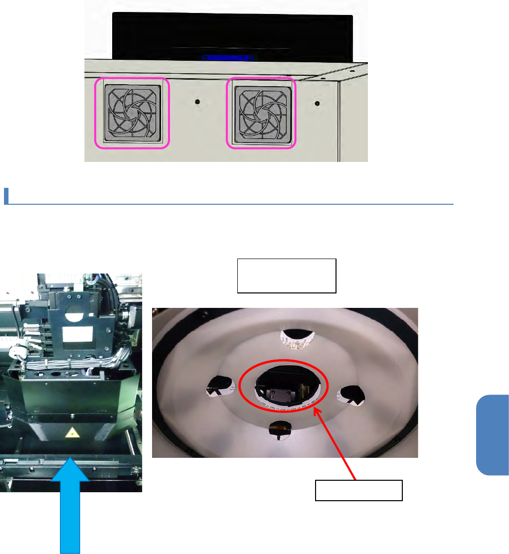 第 5 章 维护 篇 5- 2. 保养检查 10 5-2- 6. 机器内部清扫 请检查本机内部,确认 没有异物。有异物时 ,请清除。 此外,有基板粉末等时 ,用吸尘器予以清除 。 5-2- 7. 风扇的检查 请确认本机背面风扇的 动作(排气状态)并 清扫网眼。 1 确认风扇能正常排气。