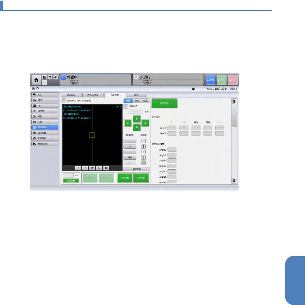 请在校准板中确认上段,中段,下段照明的亮度值。