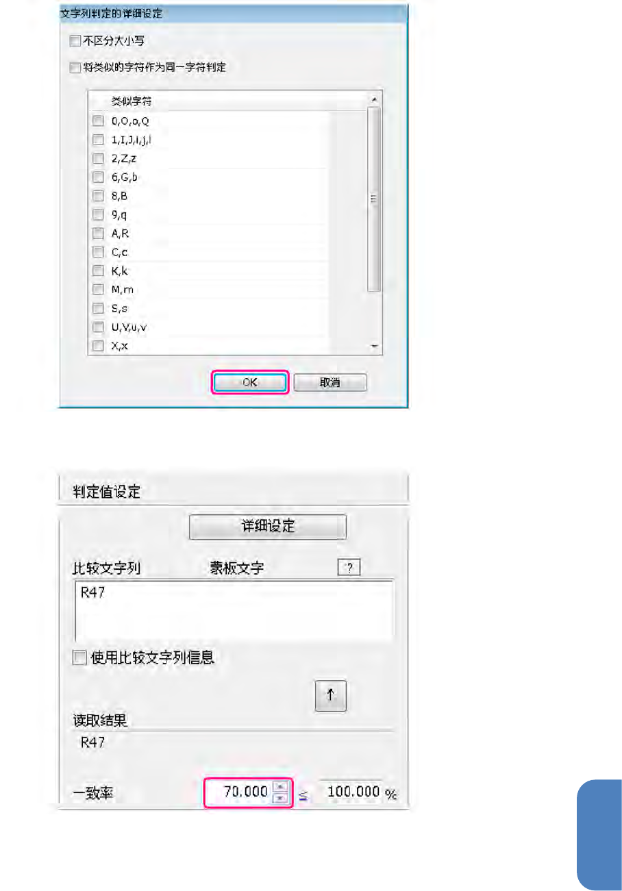 2 点击[详细设定]后,勾选判定字符串所需的项目,然后点击[OK]。