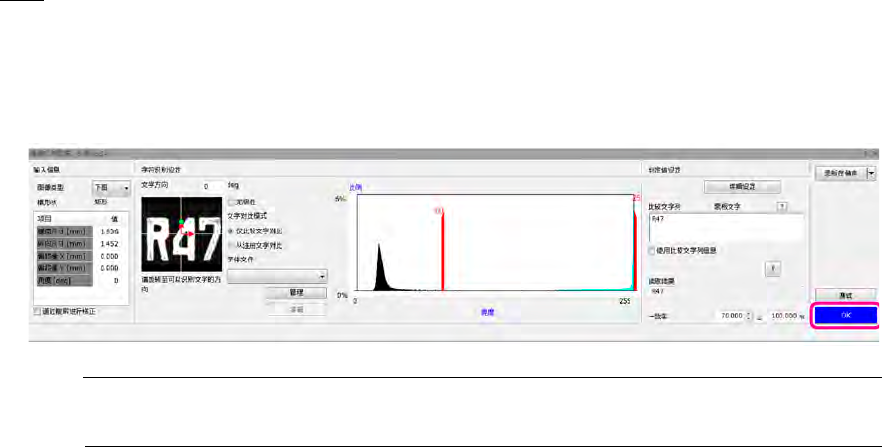 执行检查过程,结果以 OK,NG 显示在[测试]下方。