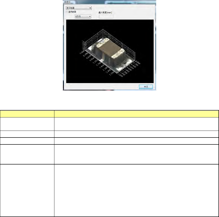 第 7 章 选配 7- 9. e- 3D(RV -2 专用 ) 51 7 7- 9. e- 3D (R V -2 专用 ) 7-9- 1. 什么是 e- 3D e- 3D 是使用高度图像 测量元件等体积或高 度、进行判定的工具 。 通过将其编入处理库编 辑中,可组合更高精 度的程序。 Tips • e- 3D 单 元,通过从斜上方 观察照射到正下方的激 光光线测量高度。 • 因此,有 时会形成元件的影 子而无法检查的区域。 UI 设…