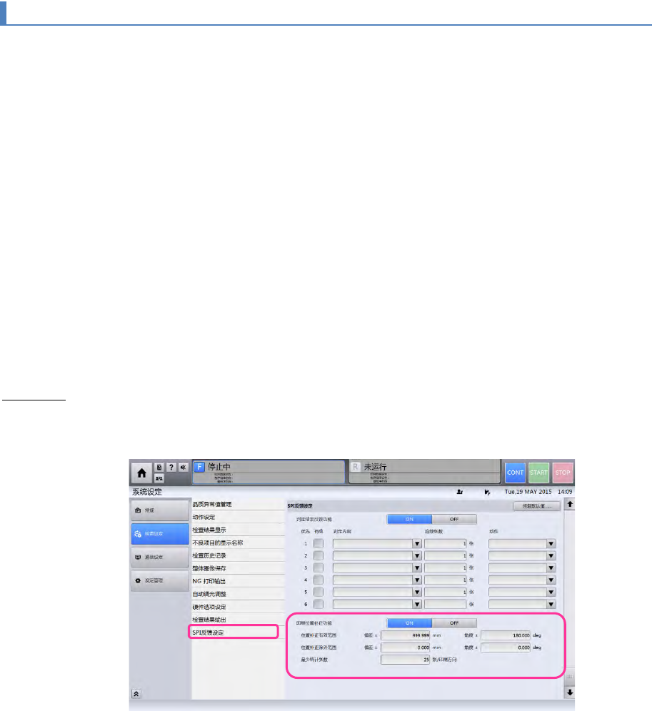 1 从顶部菜单选择[系统设定]-[检查设定],触摸子菜单的[SPI 反馈设定]。