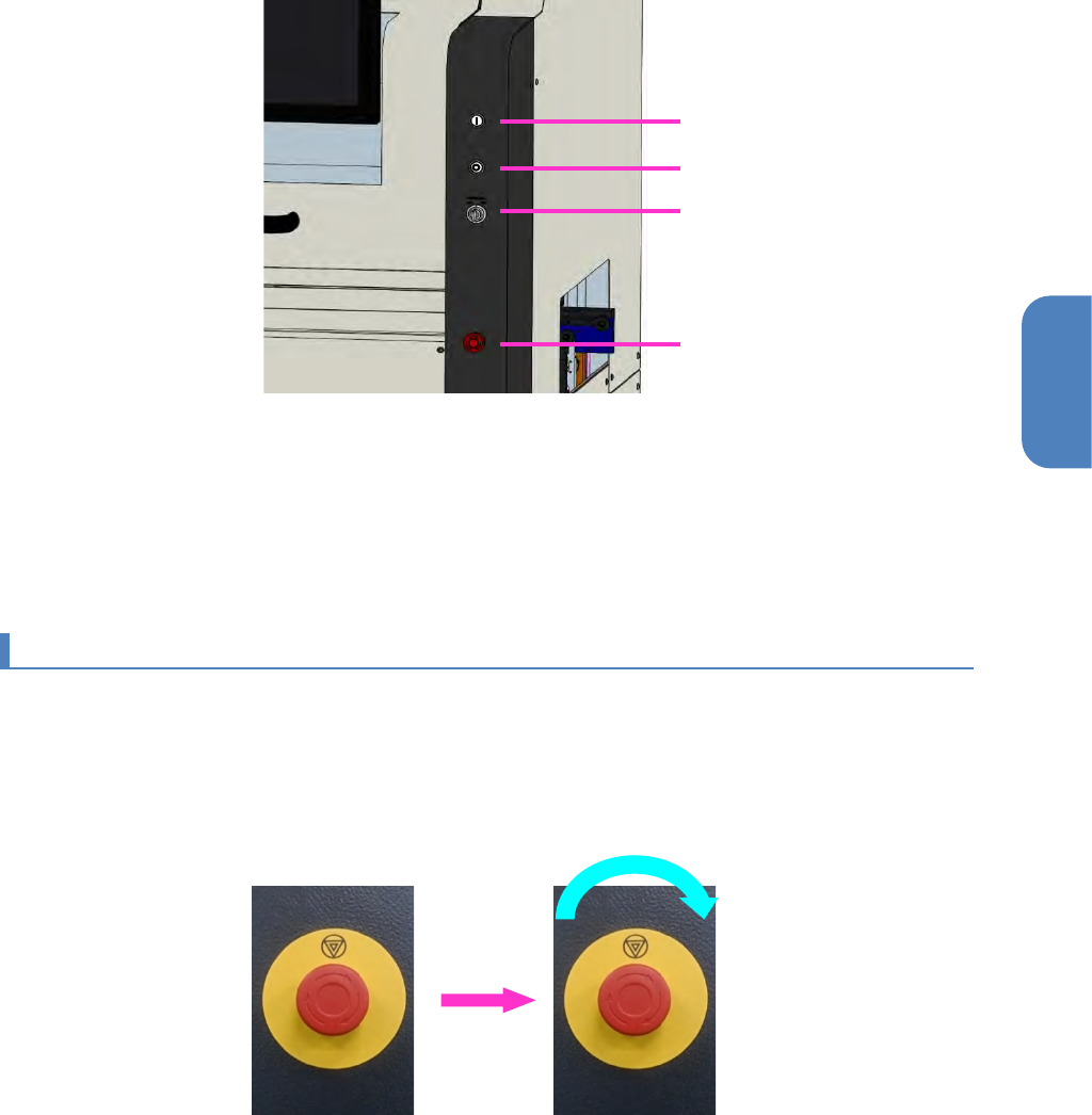 顺时针旋转紧急停止开关,开关部分回到初始位置(按下开关的状态)后即可解除。