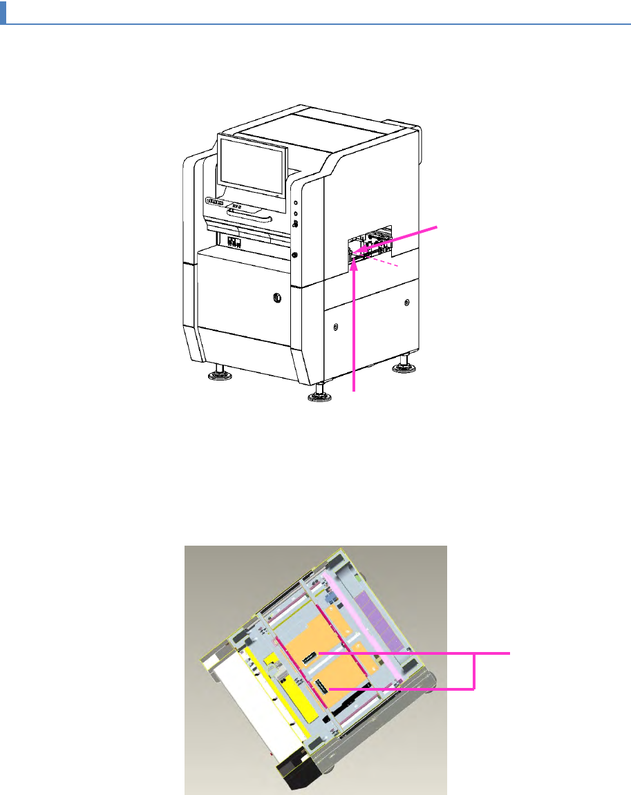 第 3 章 导入篇 3- 1. 安装 6 3-1- 3. 本机的安装 根据导入的安装系统生 产线的基板搬送规 格, 调整本机 的基板搬送面和搬送高 度。 本机的基板搬送规格如 下所示。 (a) 搬送基准面:导轨侧面 (b) 基板搬送高度: 900 - 20m m / + 70m m 皮带表面 1 在支架表面的 X 轴方向和 Y 轴方向各放置 1 个水平器。 (a) 水平器 b a a