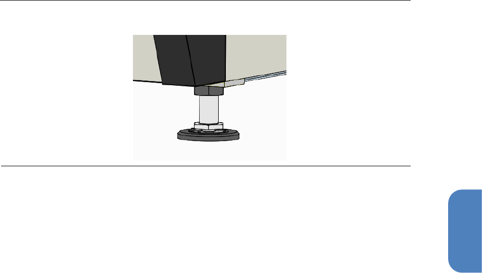 使用扳手旋转各脚的六角螺母进行微调,以确保 X 轴和 Y 轴的水平器显示的水平度在