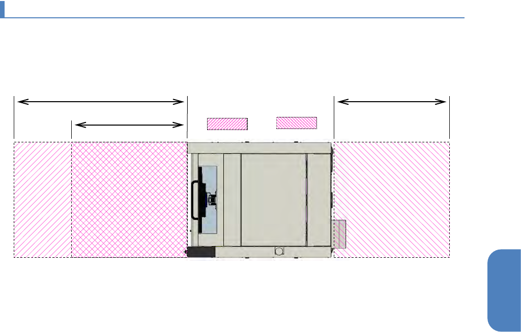 对本机进行操作和保养检查时所需的作业区域如下所示。请勿在该区域内放置物品。
