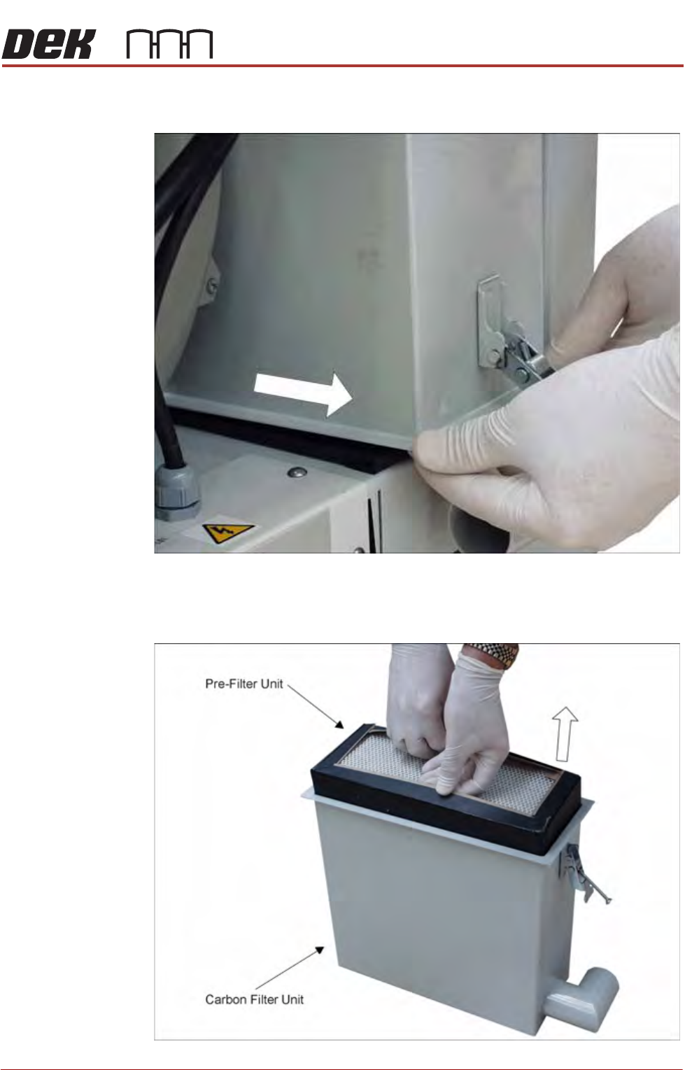 To replace any of the filters in the Vacuum Filtration Unit, carry out the following: