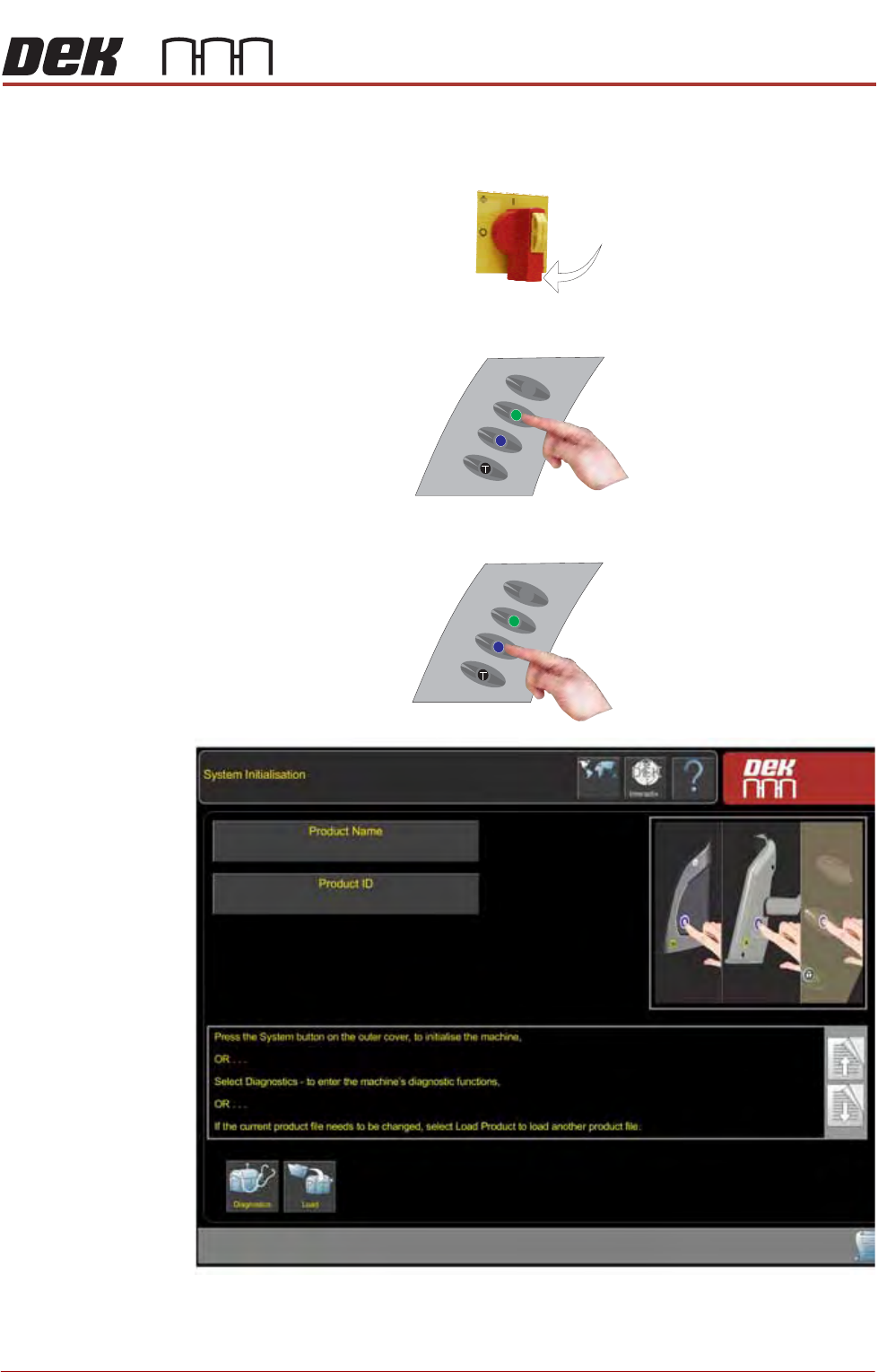 When the System Initialisation page is displayed, press the System button.