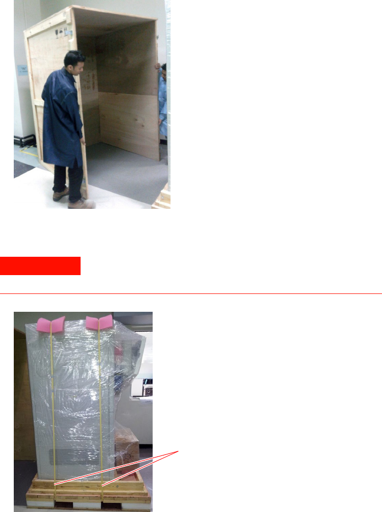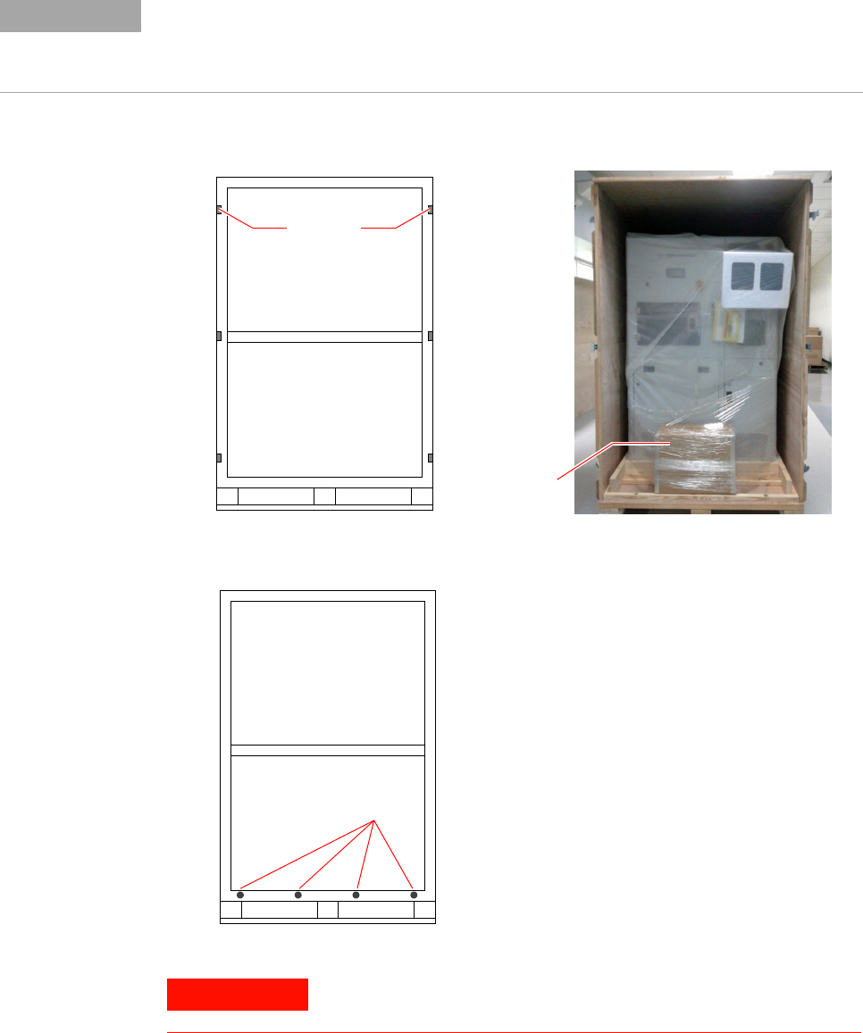 6 Use a forklift to move the system off the pallet. Note the Handling
