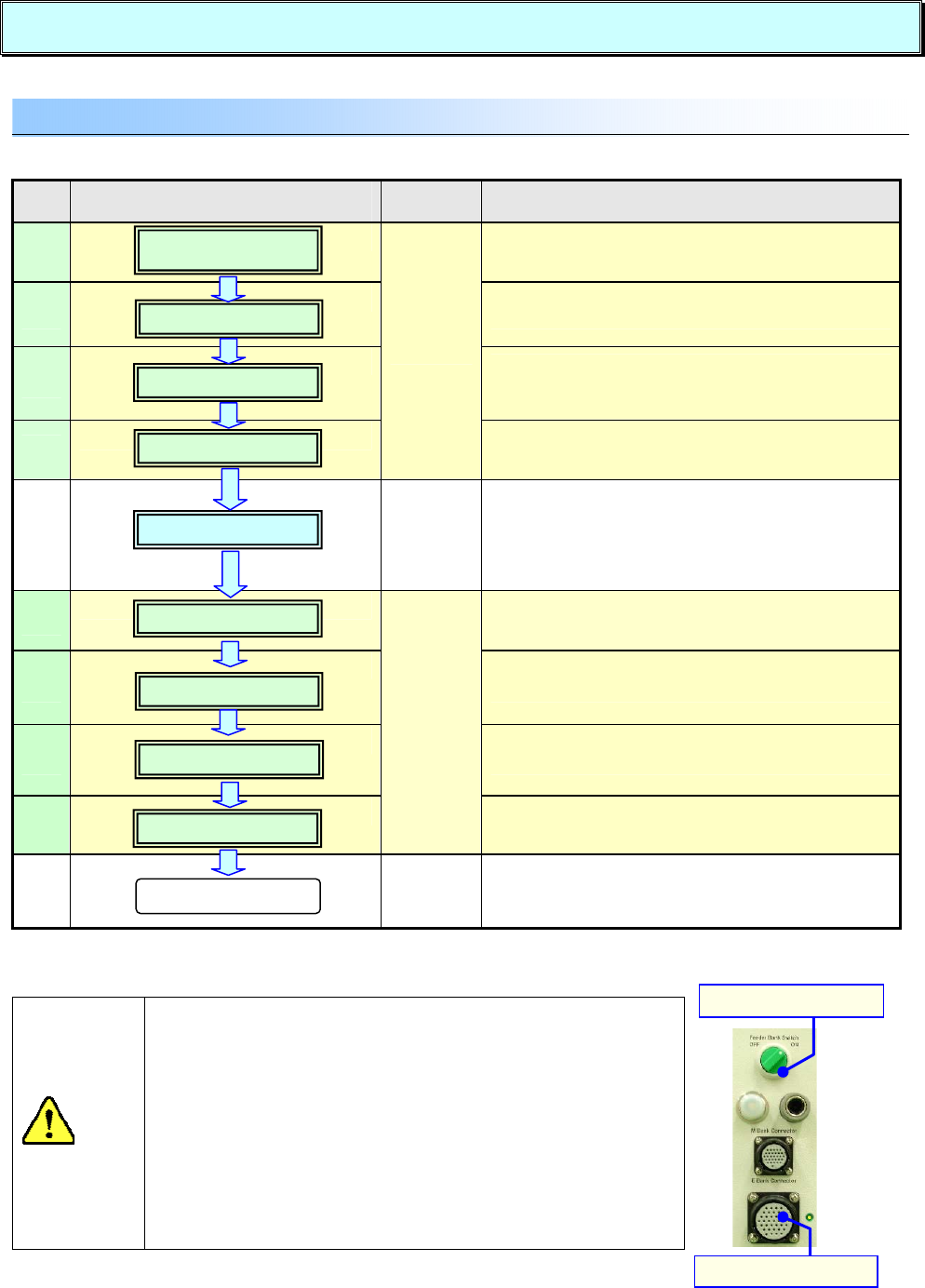 操作手册 I 2-1 2 2 作 作 业 业 步 步 骤 骤 从设备接通电源到退出的流程如下: No 流程图 作业人员 备 注 1 确认主气压 (0.5MPa) ,检 查 AT C 周围没有异物 等后接通电源。 2 执行返回原点前,确认 装置内部没有异物等。 3 节假日后或寒冷地区 , 必须执行预热。 (预热约 10 分钟 ) 。 4 操作员 若生产的基板有变更时 ,应根据基板尺寸调整 基板传送部。 5 程序员 管理员 制作生产所必须的…
