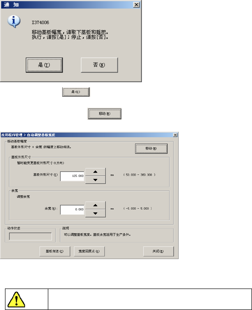 要执行「移动」、而尚未执行「宽度回原点」时,请按提示,先执行返回原点。
