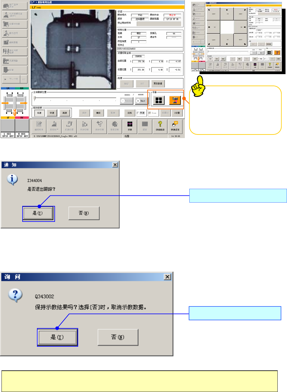 ④ 位置跟踪的最后元件示教完成后,显示下列对话框。