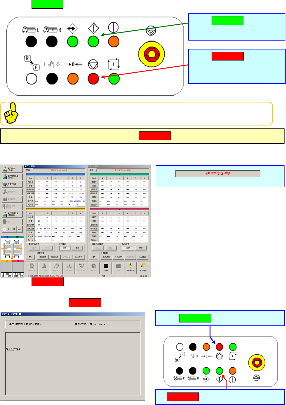按 停止开关 ,生产即中断。