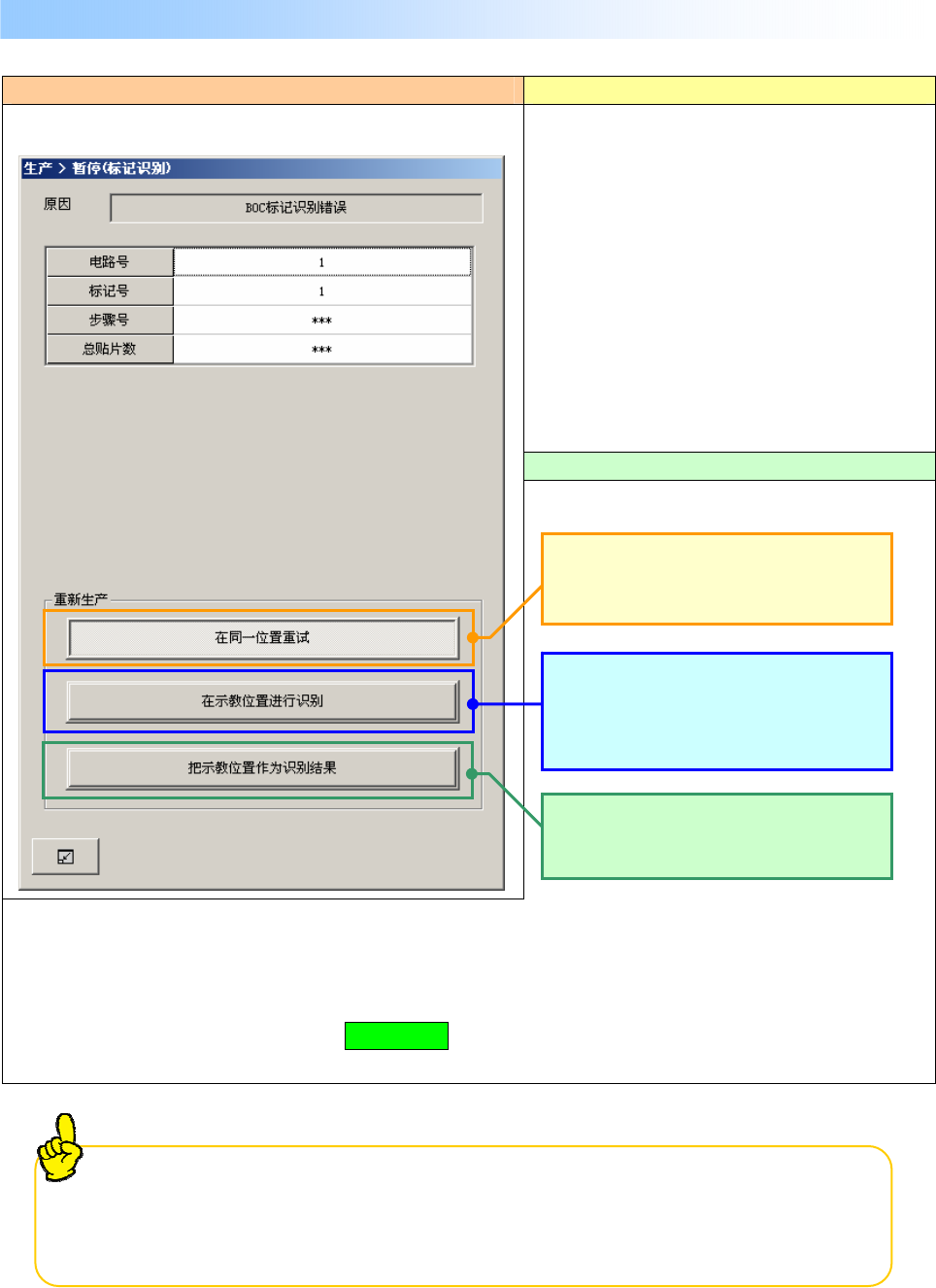 BOC 标记、基准领域标记识别错误时,显示如下画面,装置暂停。