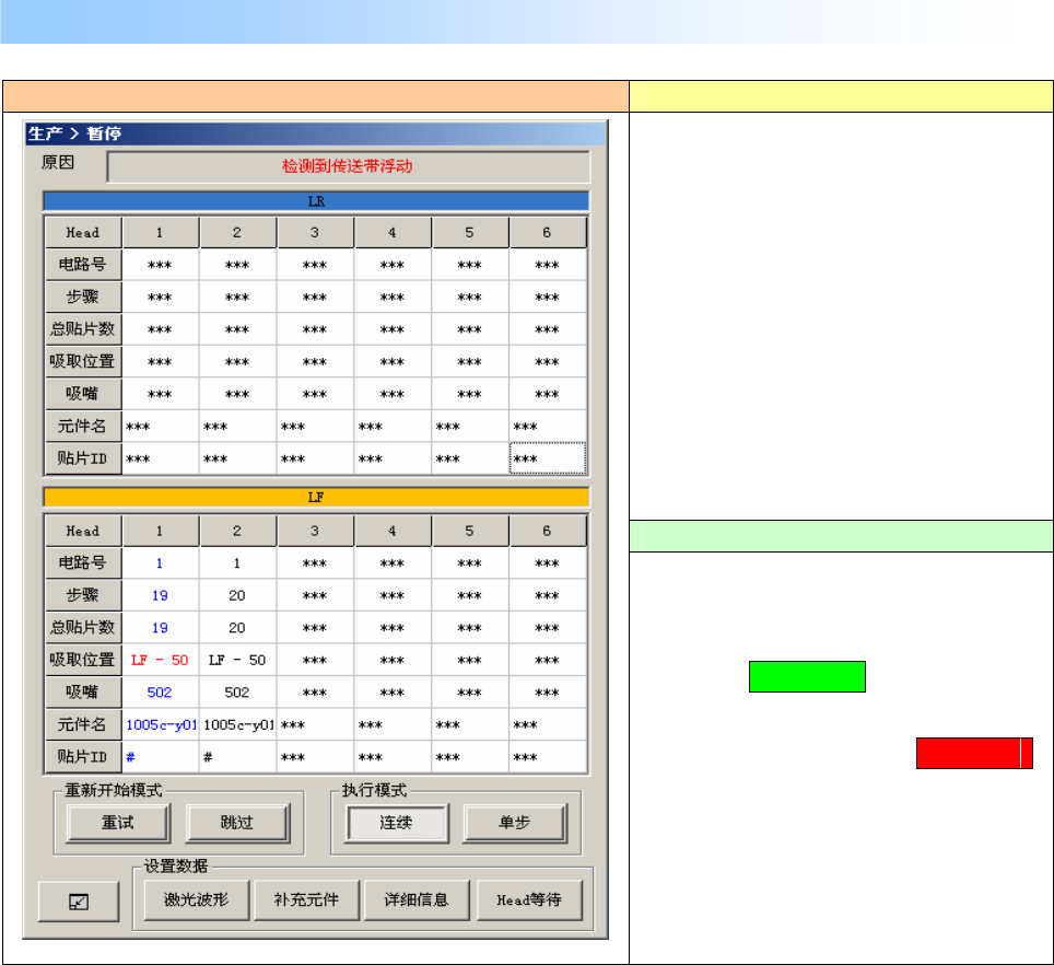生产运行中(XY 轴移动中)传送带浮动时,显示如下画面,生产异常停止。