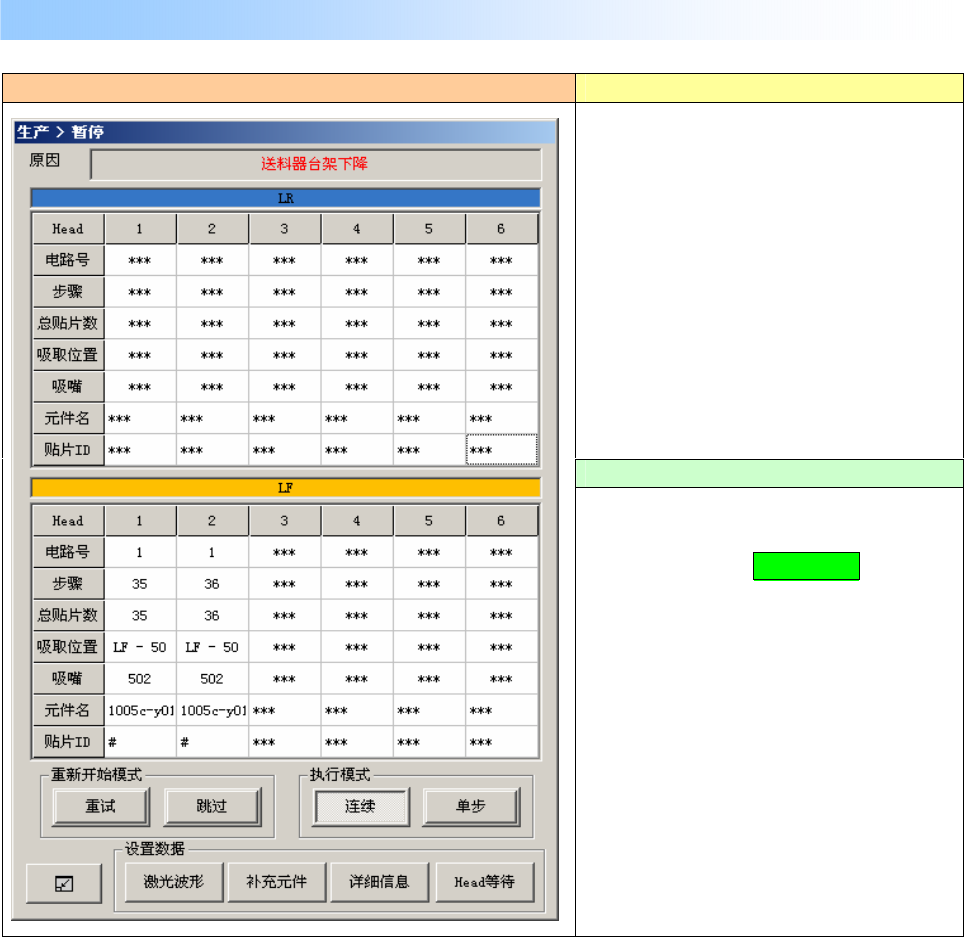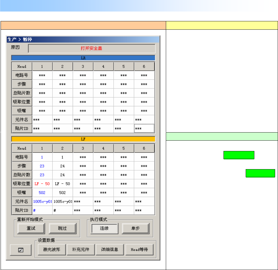 生产运行中(XY 轴移动中)打开保护盖时,显示如下画面,装置进入暂停。