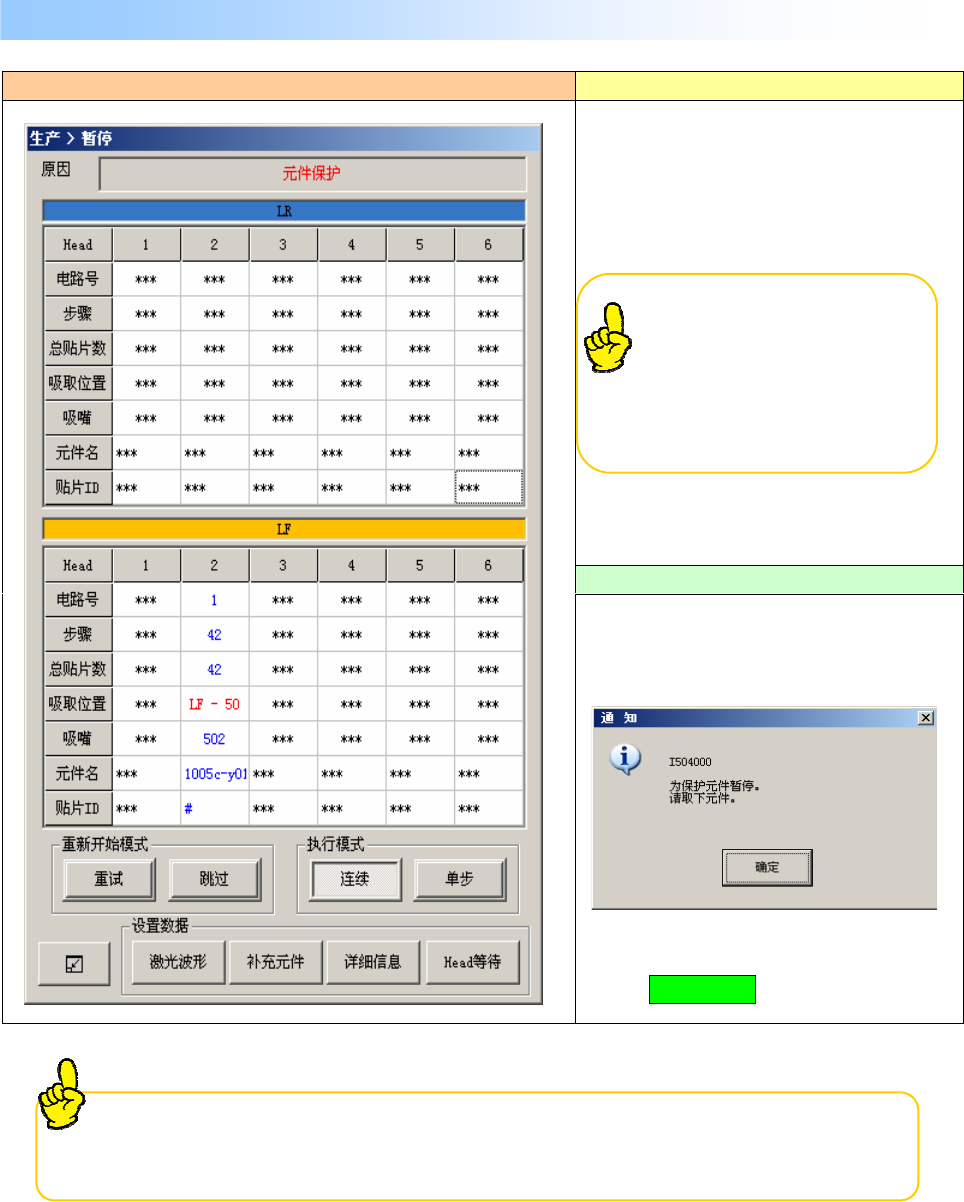 当设置「元件保护」的元件被识别出异常时,显示错误画面,装置进入暂停。