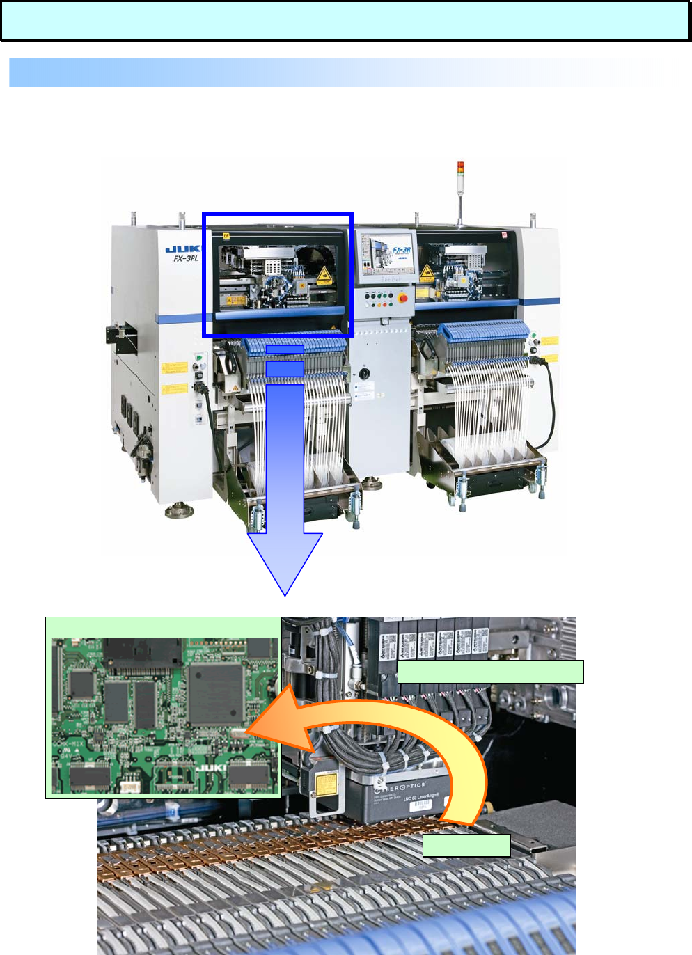 贴片头从元件供应装置(带式送料器等)上吸取元件,进行定心之后,把元件贴装到程序指定的基板
