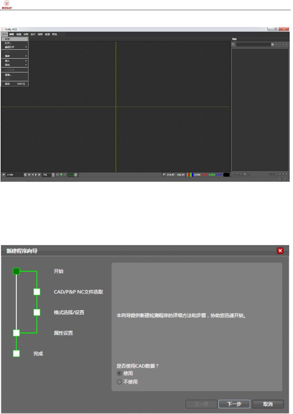 步骤 4): 在弹出的“新建程序向导”对话框内,按照提示选中“使用”CAD 数据单选按钮,点击“下