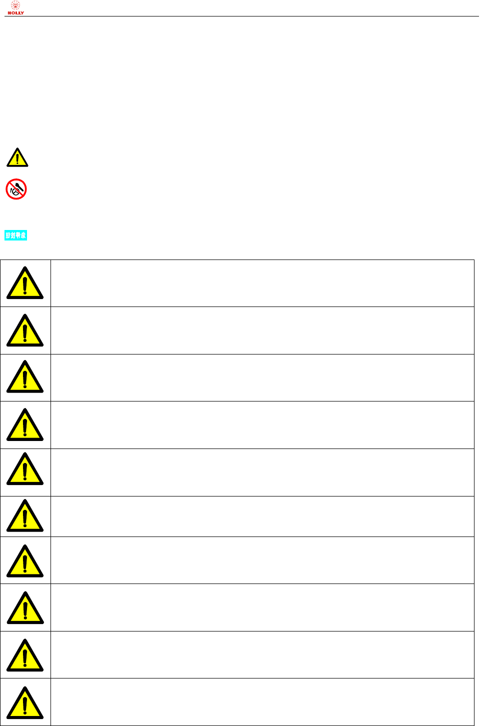 警告标志:警告使用者注意危险的标志。忽略该标志提示或者违反操作规程可能导致人员伤亡。