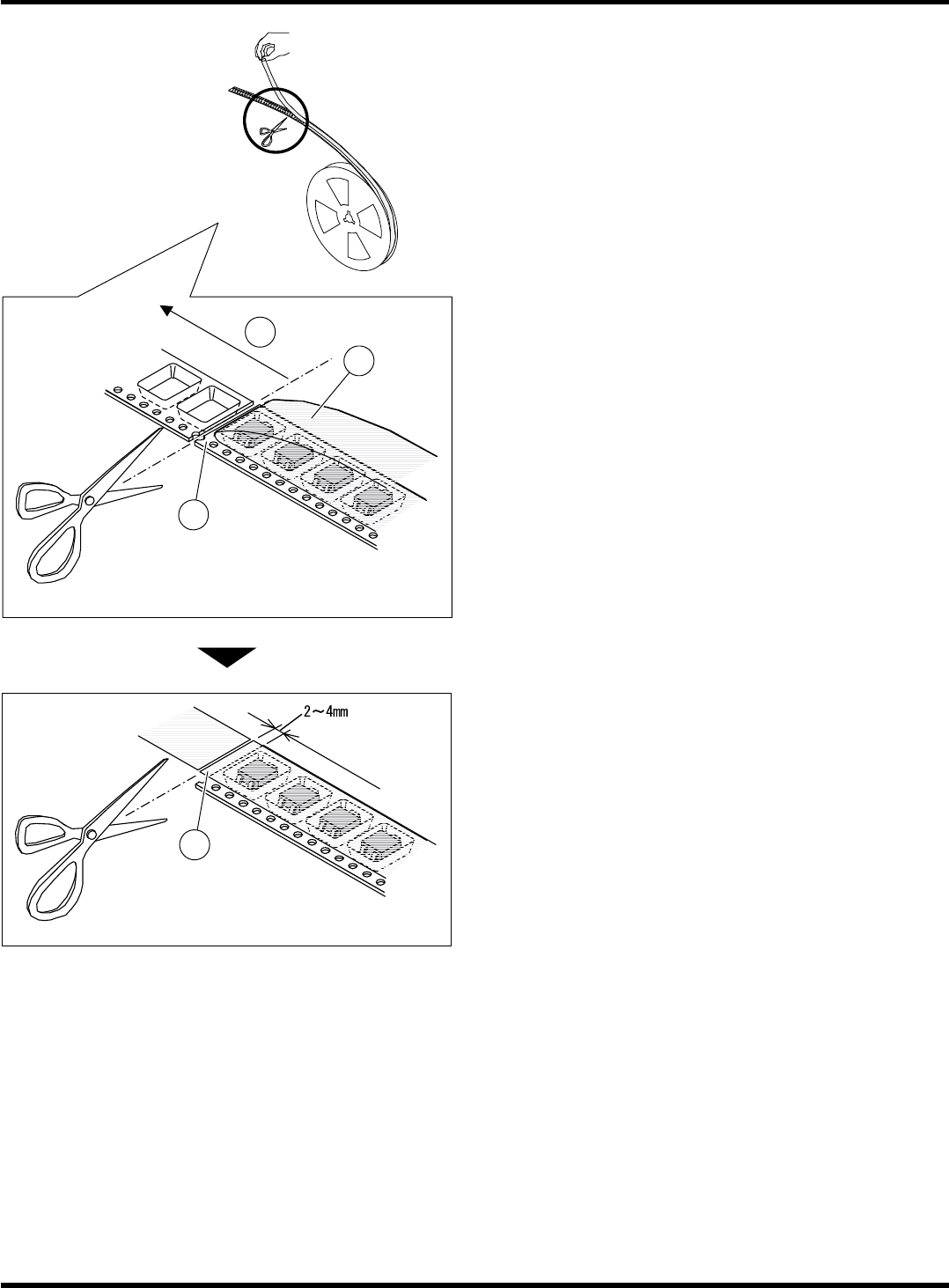 在距离载体编带 2 ~ 4 mm的位置切断压紧胶