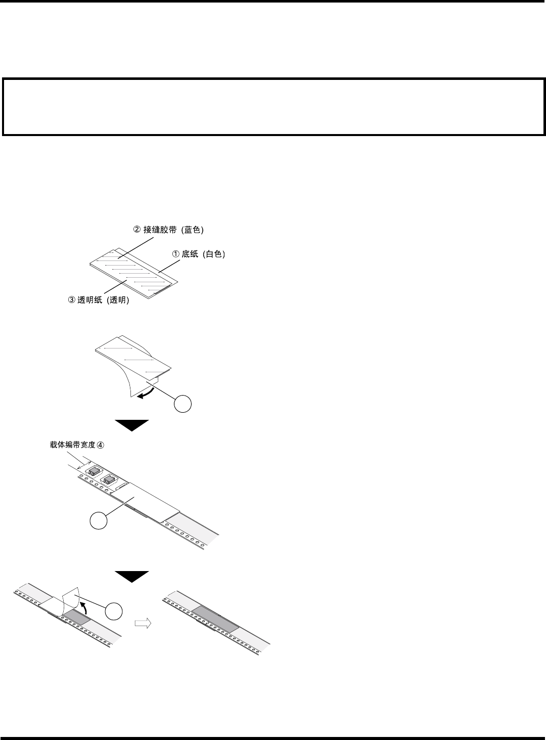 请将 56 mm、72 mm 宽编带垂直于编带的侧向粘贴