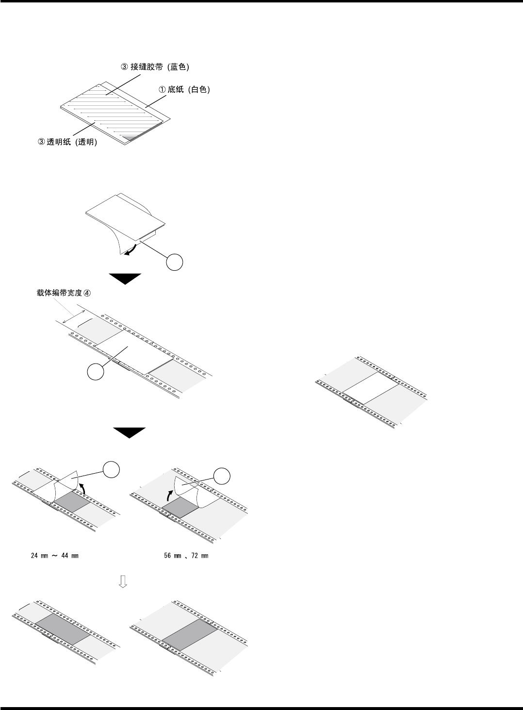2.2 12 ~ 72 mm 宽编带 (用敛缝治具连接)