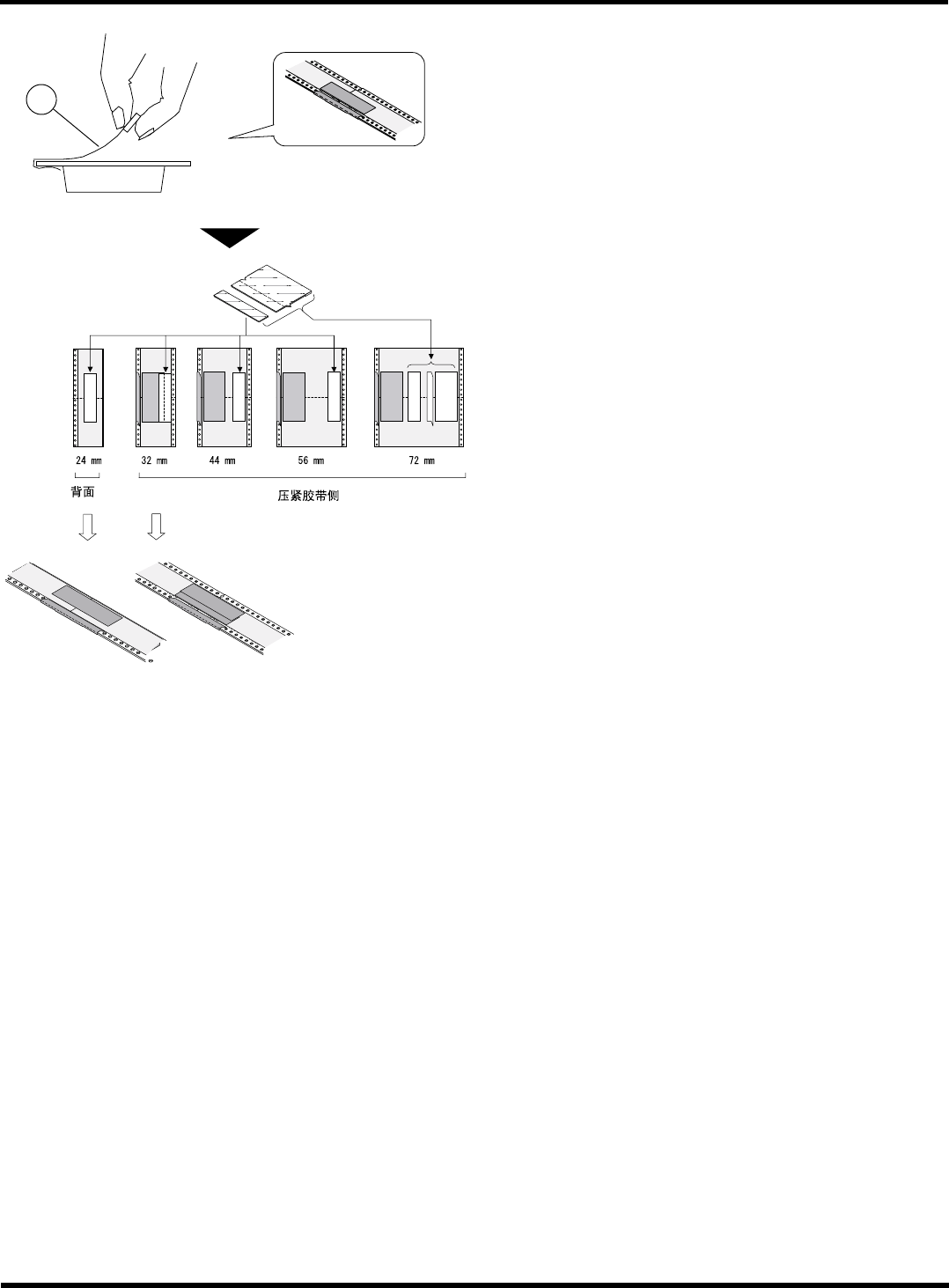 对于 24 mm 宽的编带请粘到背面,32 mm ~ 56 mm