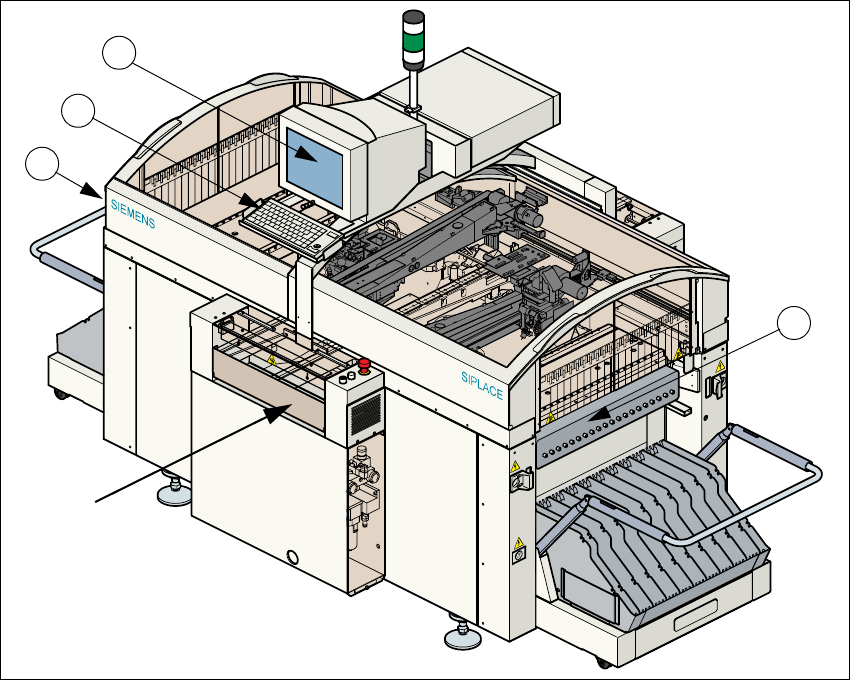Fig. 2.1 - 3 Vista d’insieme sulla macchina di montaggio automatico SIPLACE S-25 HM / S-27 HM