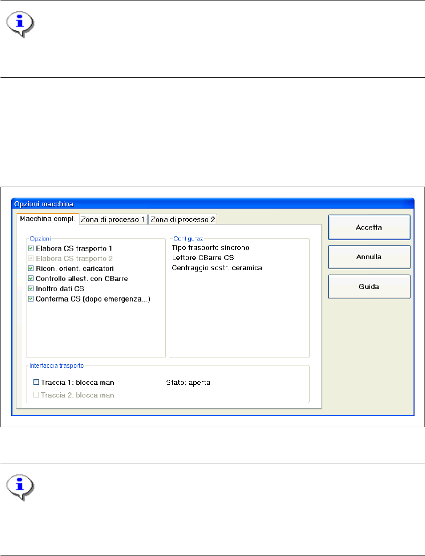Sono visualizzate solo le opzioni macchina configurate sulla stazione attuale. 3