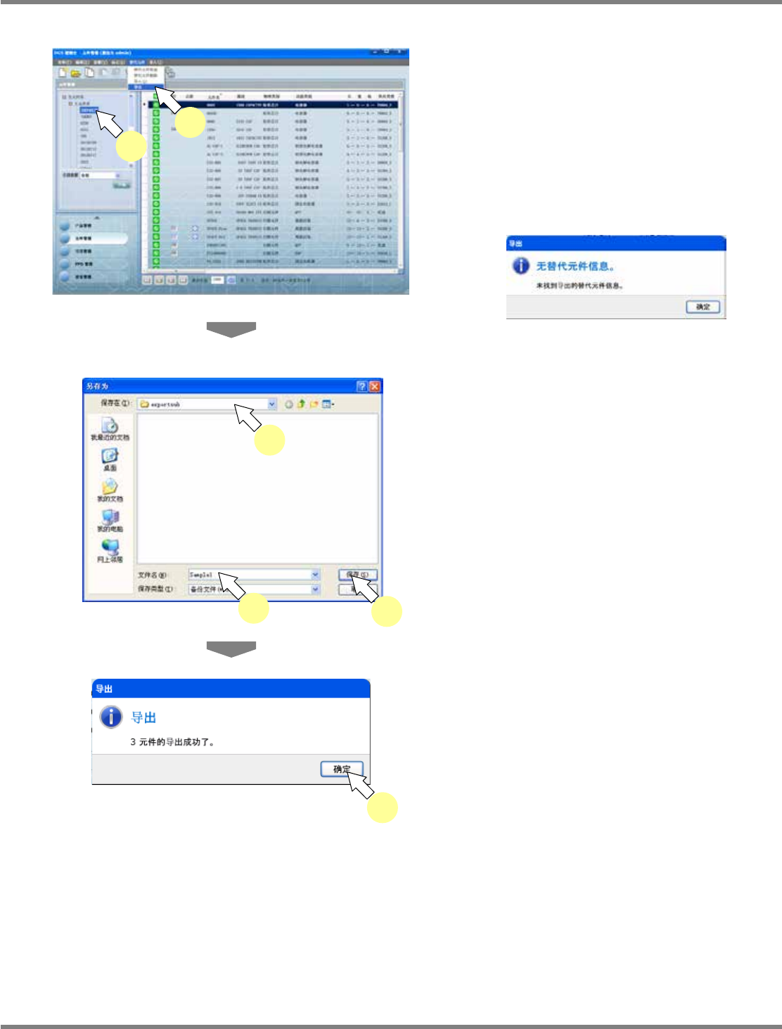 NPM-DGS 程序手册 6.8 代替元件的设定 EJS9AC-MB-06P-08 Page 6-155 导出替代元件设定 1 从元件一览中选择需要导出的程序库。 2 选择菜单栏的 [ 替代元件 ] [ 导出 ] 。 显示出 < 另存为 > 画面。 当在所选择的元件库内不存在替代元 件设定 时,将显示以下的错误对话框。 3 选择需要导出的场所。 4 输入文件名。 5 点击 [ 保存 ] 。 将关闭 <…