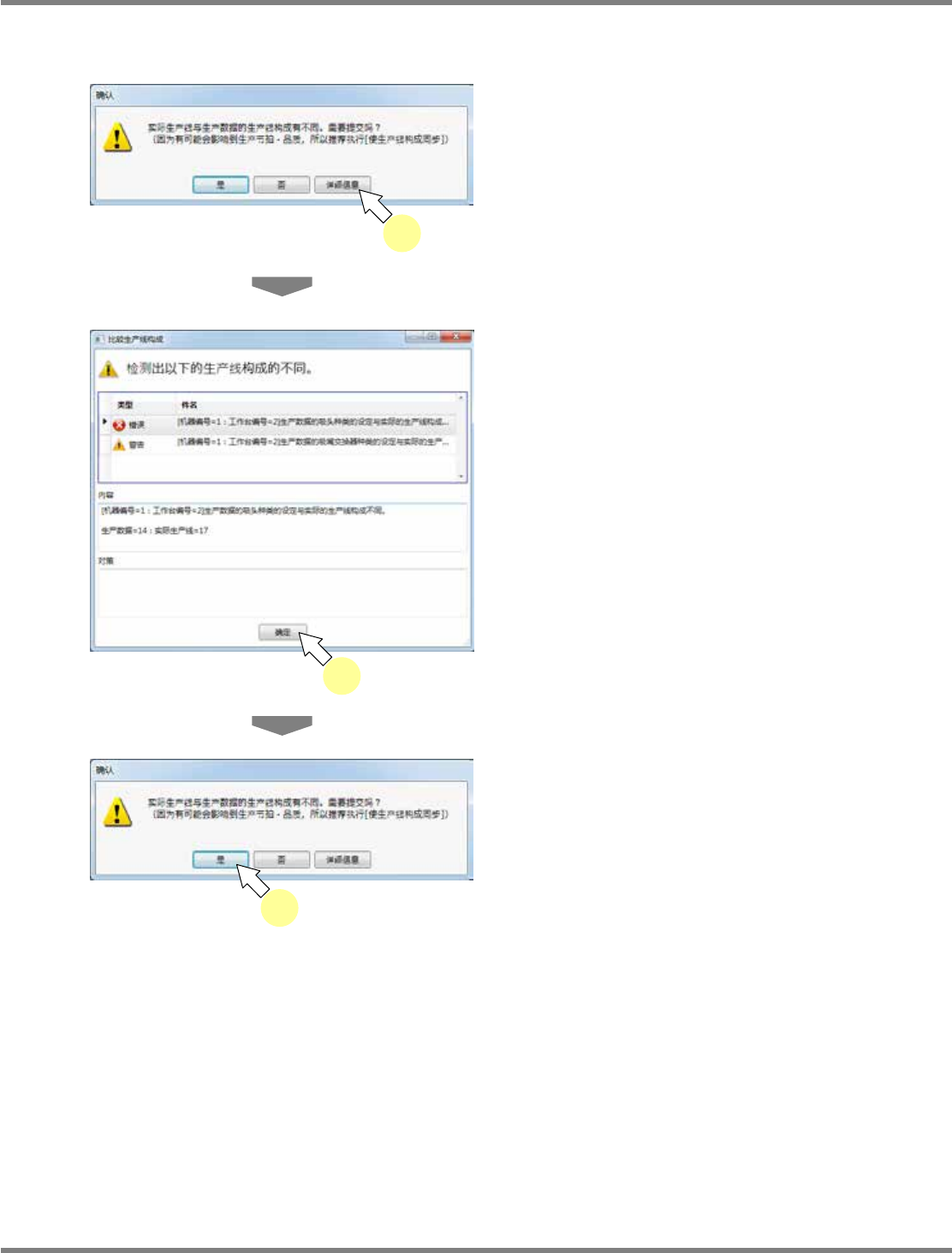 当实际生产线与生产数据的生产线构成存在不同时,将显示确认画面。