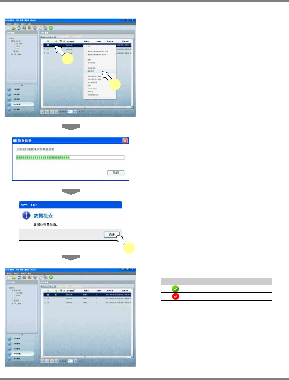 将会在生产数据一览中显示数据检查结果。
