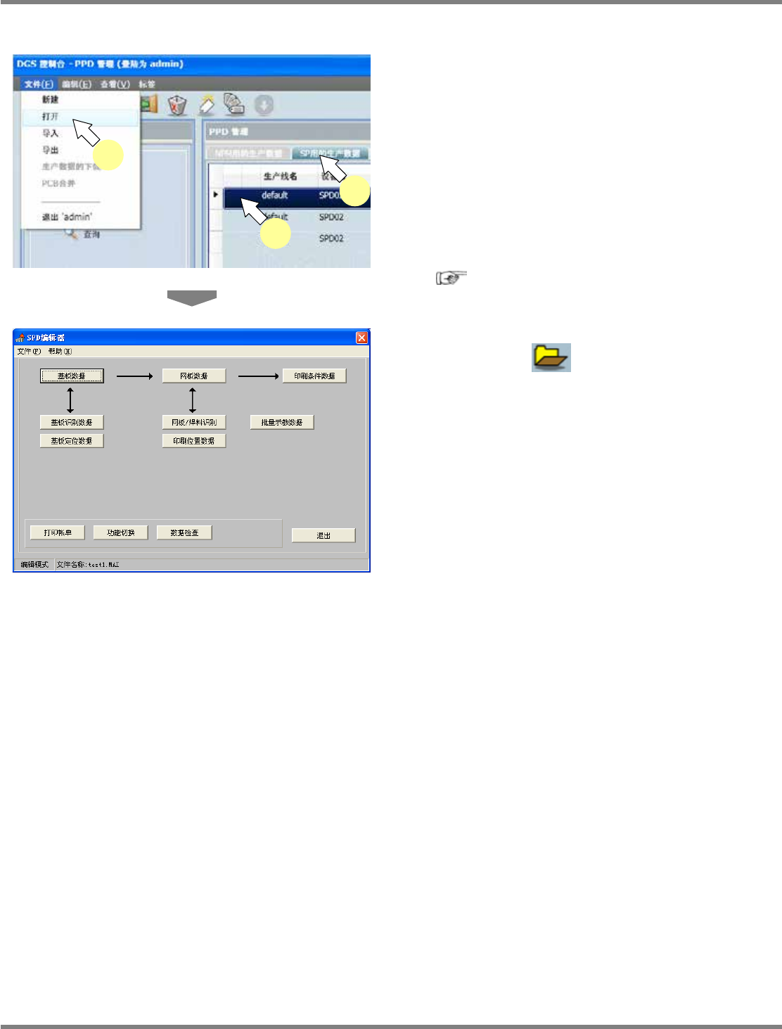 NPM-DGS 程序手册 9.3 生产数据的操作 Page 9-64 EJS9AC-MB-09P-06 SP 生产数据的编辑 1 点击 [SP 用生产数据 ] 标签。 2 从一览中选择需要编辑的 SP 生产数 据。 选择了快捷方式的数据时,所链接 的 SP 生产 数据即为编辑对象。 ‘ SP 生产数据的快捷键 ’ 3 选择菜单中的 [ 文件 ] [ 打开 ] ,或者点 击工具栏的 ( 打开 ) ,或者从右 击菜单中选择 …