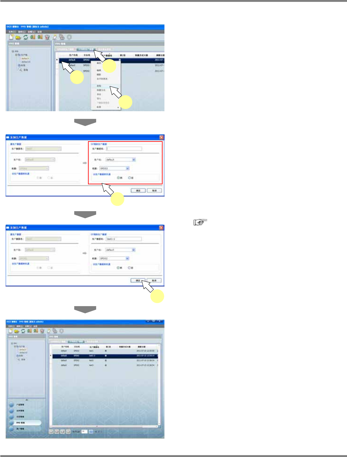 生产数据一览中显示所复制的