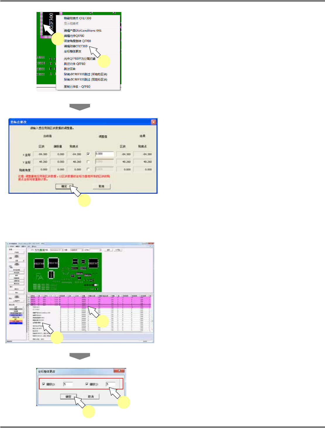 NPM-DGS 程序手册 9.4 关于项目编辑系统画面 EJS9AC-MB-09P-06 Page 9-95 基板画面上的元件搜索和替换 在本功能下,通过 ‘ 插槽位置 ’ 、 ‘ 吸嘴位置 ’ 、 ‘ 参考号码 ’ 、 ‘ 元件名 ’ 等来搜索元件。 在 PPD 编辑器、 LWS 编辑器下,还能够替换元件。 在 PPD 编辑器上,进行下述的两种替换 。 替换为登录在元件库内的元件 ( 同时替换元件数据。 ) 不变更元件数据…