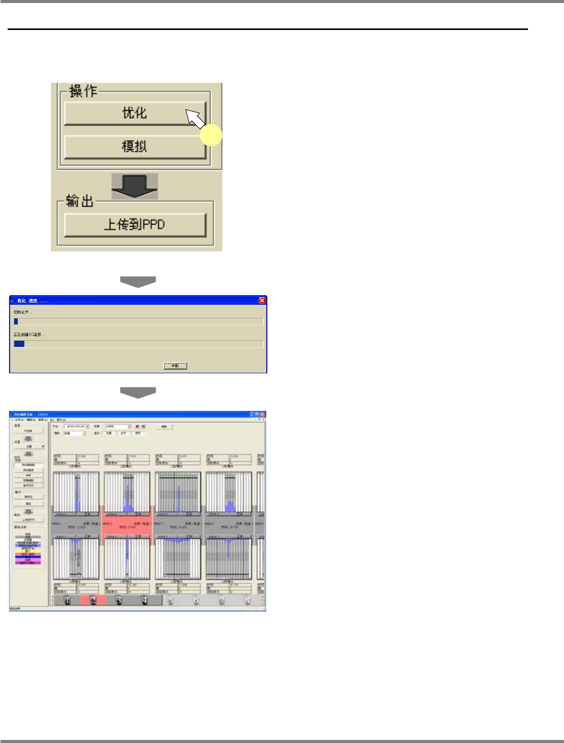 NPM-DGS 程序手册 9.6 生成数据 EJS9AC-MB-09P-06 Page 9-107 9.6.2 模拟 使用现在的供料器配置和吸嘴配置进 行优化。 1 在项目栏的 ‘ 动作 ’ 的 ‘ 操作 ’ 中选择 [ 模 拟 ] ,或者在菜单栏中选择 [ 操作 ] [ 模 拟 ] 。 将会显示模拟的进度画面。 与优化相同,正常结束后将会切换到 供料器装 配画面,并显示结果。发生错误时, 将在事件 日志画面上显示错误内容。…