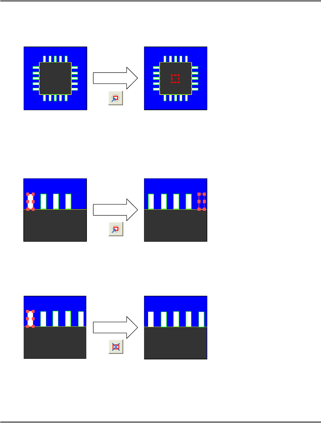 NPM-DGS 程序手册 11.4 用扫描设备制作识别选项数据的详情 EJS9AC-MB-11P-03 Page 11-17 对齐复数电极的位置。 选择要对齐的复数电极,然后选择菜 单的 [ 元件形状 ] [ 引线更改 ] [ 排列到 xx] ,或者点击 [ 排列 ] ,边缘将 对齐到同一组的基准电极。 以最边缘的电极为基准。 ( 例 : 左对齐以最左边的电极为基准。 ) 从最边缘的电极起开始以电极长度范 围内的电极…