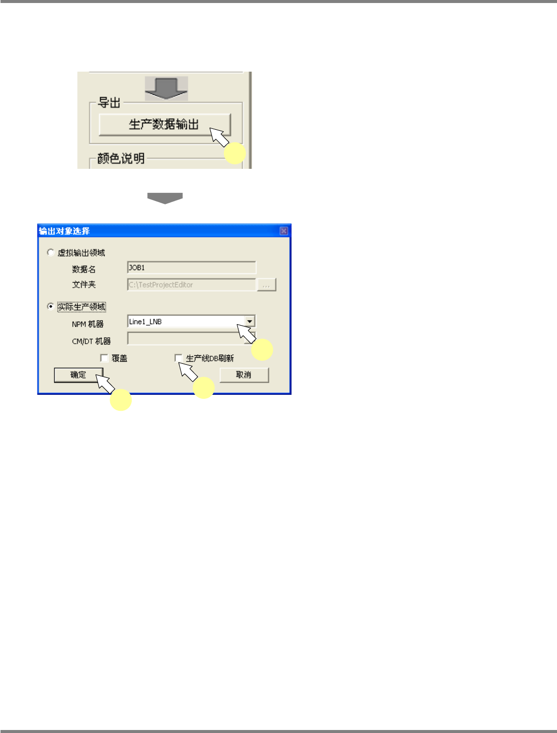 选择输出目的地的生产线。