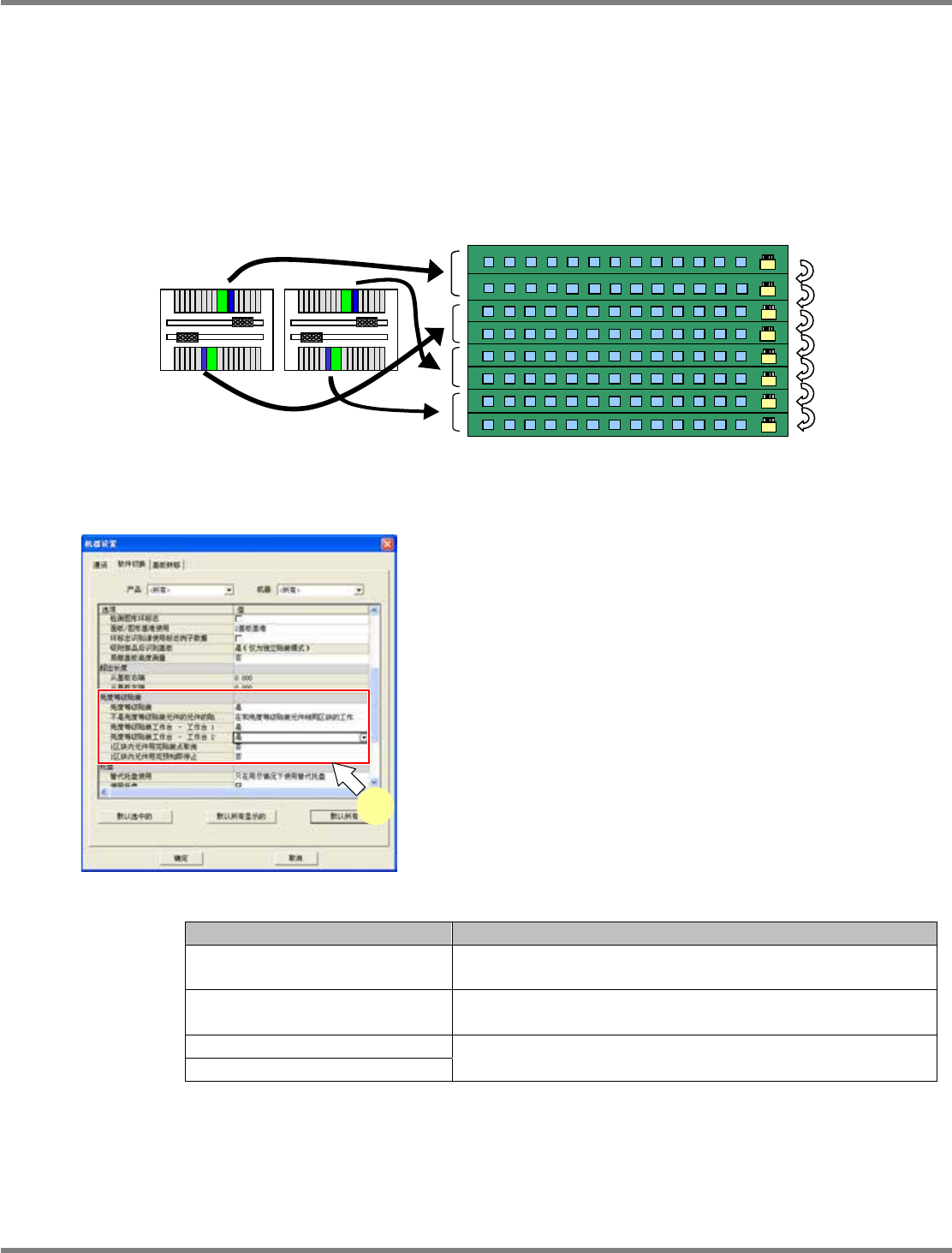 NPM-DGS 程序手册 13.1 等级贴装功能 Page 13-10 EJS9AC-MB-13P-07 ④ 在其他工作台上实装等级贴装元件以外的元件时 在这里,对在其他工作台上实装等级 贴装元件以外的元件时的数据编 制方法进行说明。 等级贴装元件, 与只实装等级贴装元件的情形相同 , 但是在软开关下, 需要对等级贴装以外的元件 进行配置到哪里的设定。 实装元件为等级贴装元件和其他元件 在各工作台上配置等级贴装元件和其 他元件 …