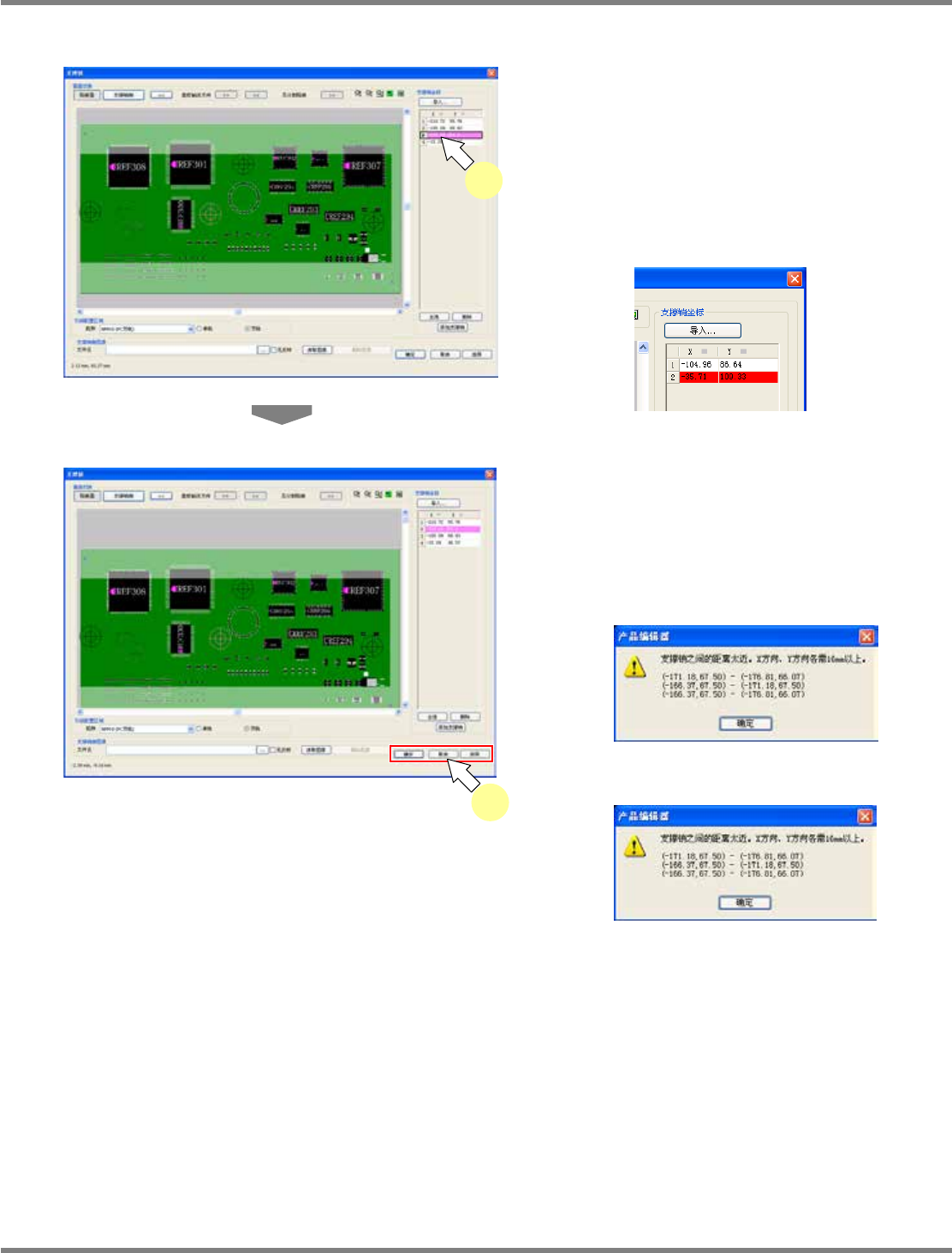 上的支撑销,将以红色显示支撑销坐标。