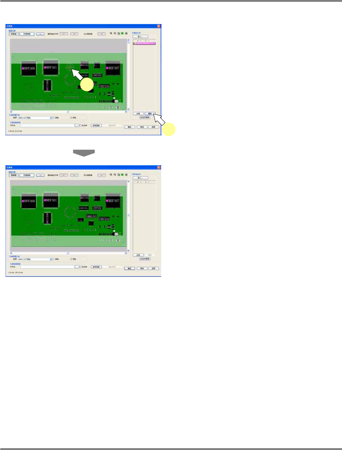 NPM-DGS 程序手册 13.2 支撑销配置数据的编制功能 Page 13-34 EJS9AC-MB-13P-07 支撑销的删除 1 选择需要删除的支撑销后, 点击支撑销 坐标的 [ 删除 ] 。 将会以粉红色强调显示所选择的支撑 销。 将会删除所选择的支撑销。 Howto130205S-0 6C01 Howto130205S-1 2C01 1 1
