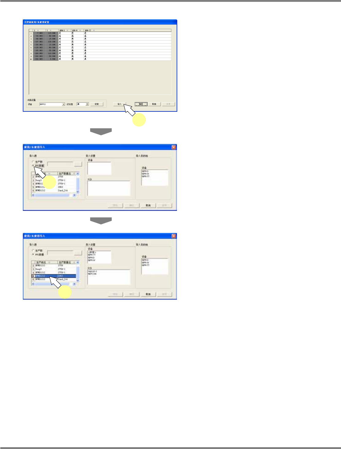 将会在导入设定画面上一览显示包含在生产数