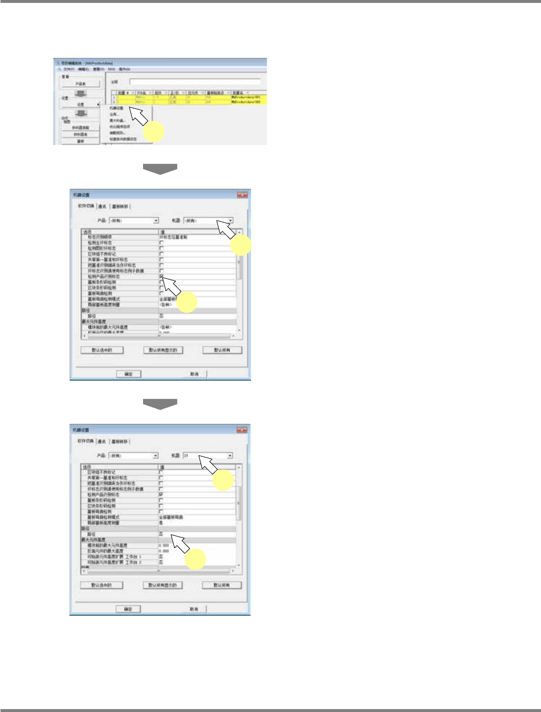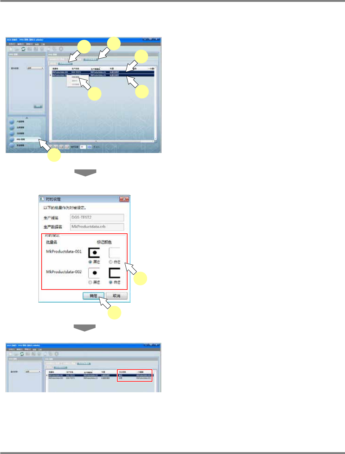 NPM-DGS 程序手册 13.4 根据机种辨别标记进行机种切换的功能 Page 13-62 EJS9AC-MB-13P-07 13.4.5 成对基板设定 设定成对的基板,并设定机种辨别标 记的颜色。 1 选择 PPD 管理。 2 点击 [ 自动准备替换 ] 选项卡。 3 点击 [ 机种辨别标记 ] 选项卡。 4 选择成对的第 1 张的批量。 5 在按住 [Ctrl] 键的同时选择第 2 张的批 量。 请指定相同生产数据名的批量。 …