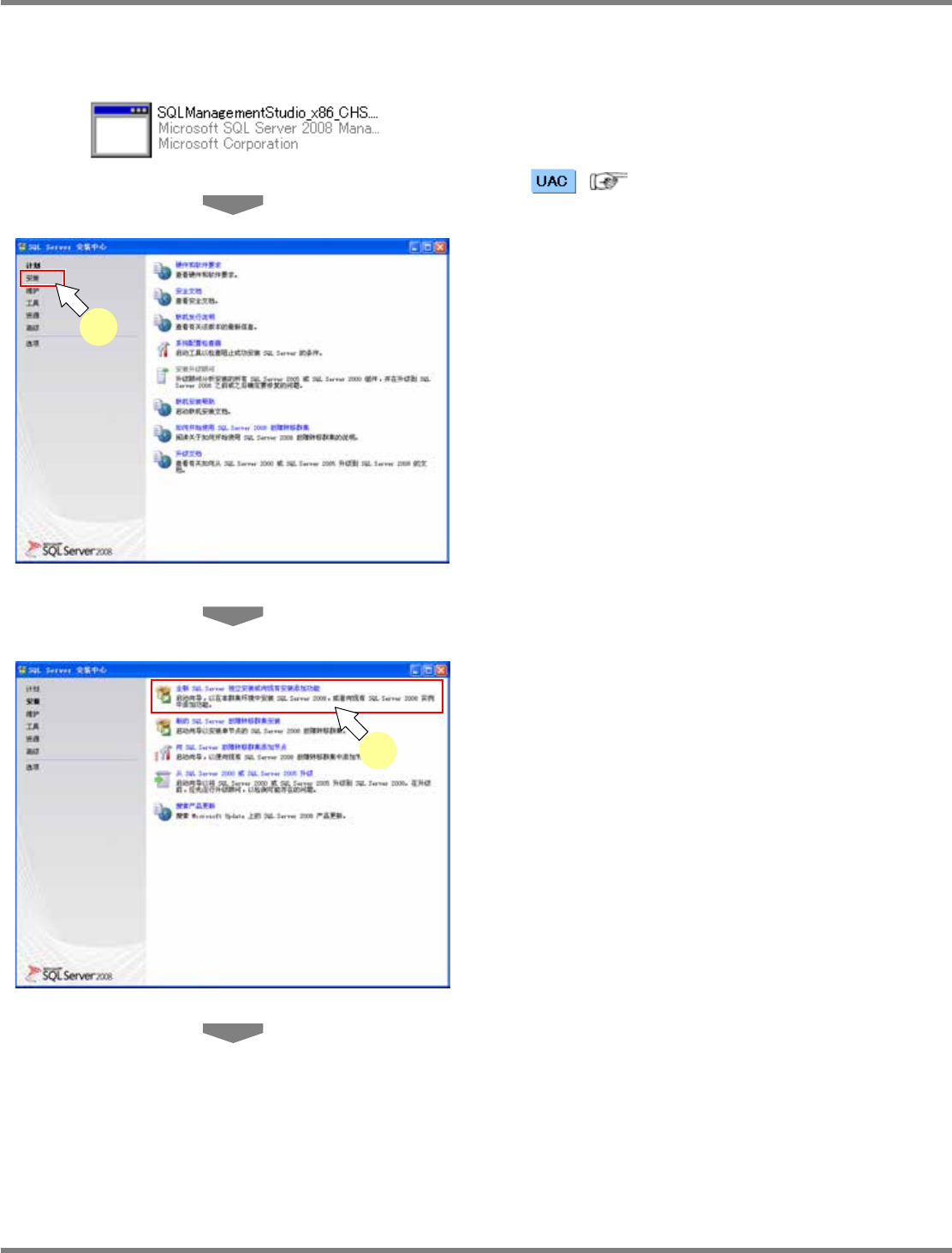 NPM-DGS 程序手册 2.2 DGS 应用程序的升级 Page 2-82 EJS9AC-MB-02P-03 ② 相应 SQL Server 2008 , Microsoft SQL Server 2008 Management Studio Express 的卸载 1 启动 ‘Microsoft SQL Server 2008 Management Studio Express’ 安装器。 ( ‘1.3.1 关于用户帐户控制 ’…