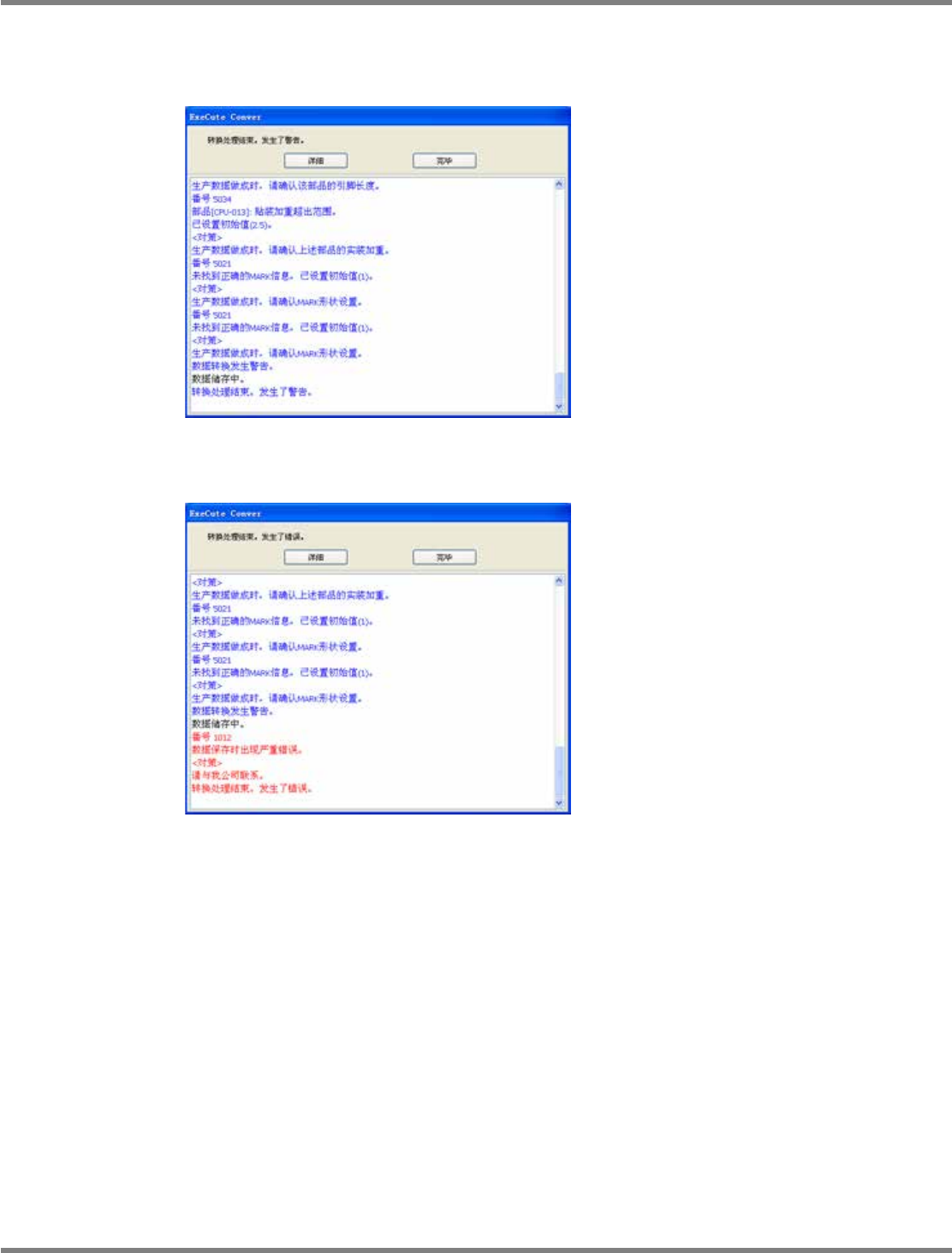 NPM-DGS 程序手册 13.5 SCAP (Special Convert A Panasert) Page 13-88 EJS9AC-MB-13P-07 13.5.10 转换的执行 1 设定偏移值后,点击 [ 执行 ] 。 将执行转换,并显示转换结果对话框 。 在转换对话框中存在下述 3 种状态。 正常 : 转换正常结束。 警告 : 转换虽然完成, 但是存在一部分不正 确的数据, 因此设定了 DGS 的标准 值。 请在 D…