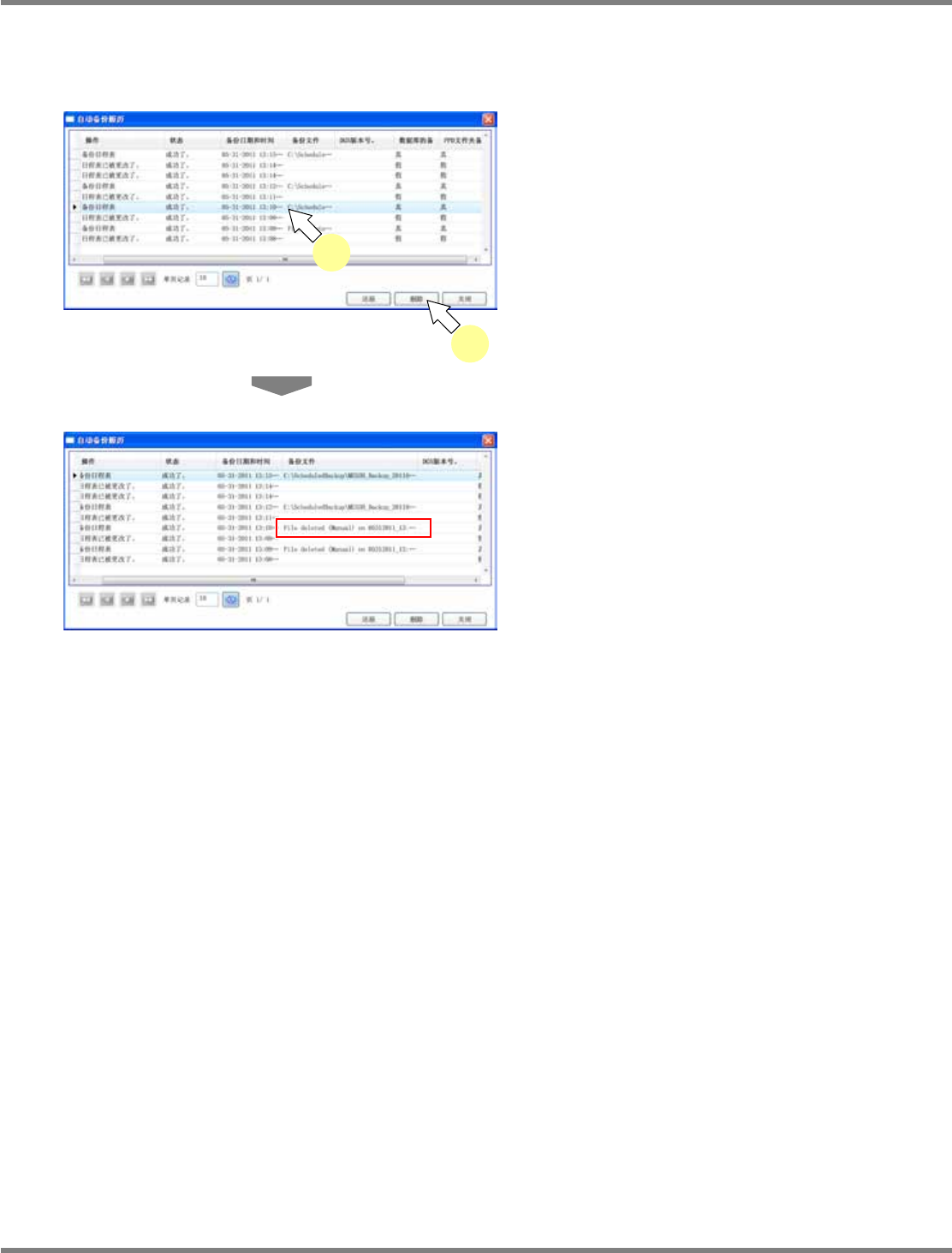 需要删除履历、备份文件时,从一览中