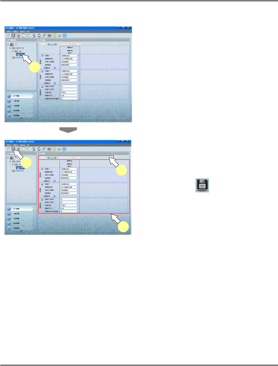 在工厂内容区域里显示出各自的设定项目。