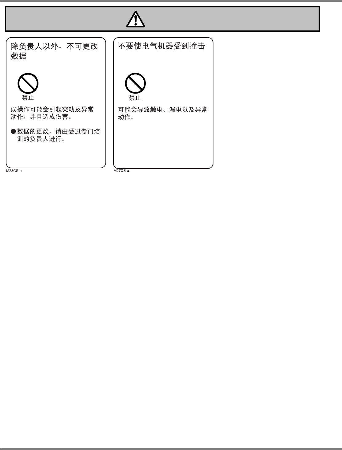 NPM-DGS 安全注意事项 EJS9AC-SF-01N-00 Page S-3 警告 接受专门培训后再操作设备 误操作有可能会导致受伤 。 ● 有关培训是否在贵公司进行,请与 敝公司商洽 。