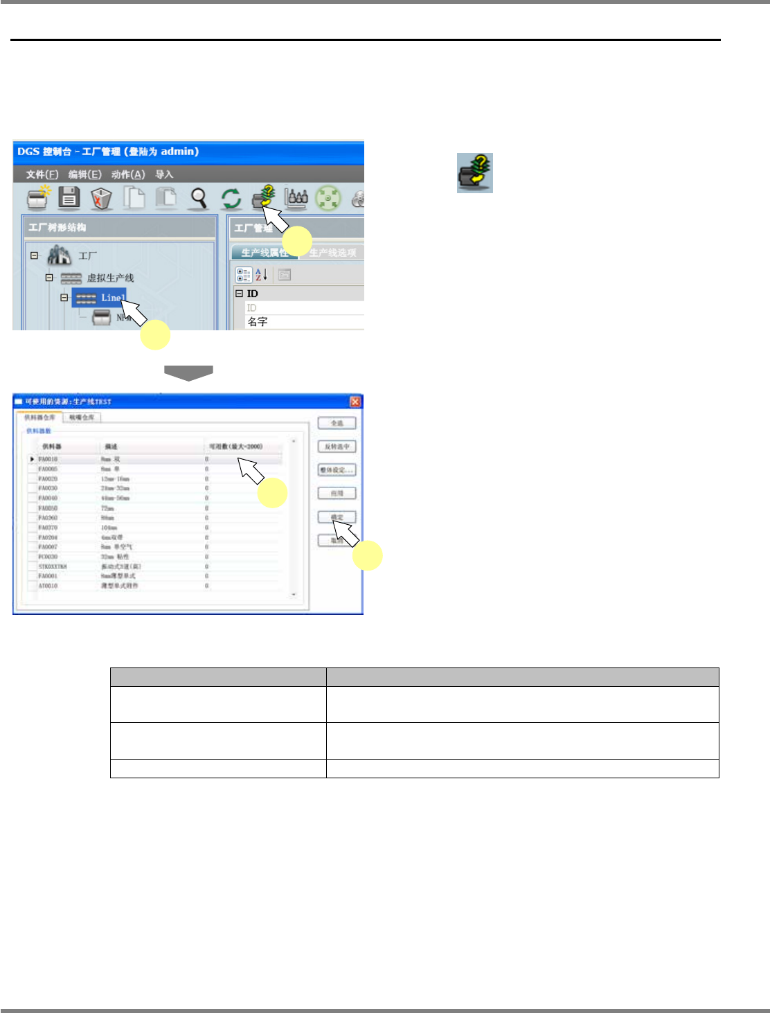 NPM-DGS 程序手册 4.8 供料器仓库的設定 Page 4-80 EJS9AC-MB-04P-10 4.8 供料器仓库的設定 在供料器仓库的設定中,设定供料器 。 供料器数的确认和编辑 1 选择需要设定的生产线后, 点击工具栏 的 ( 编辑仓库 ) 。 显示出供料器仓库设定画面。 在供料器数列表中显示以下字段。 • ‘ 供料器 ’ • ‘ 描述 ’ • ‘ 可用数 ’ 2 输入可利用的供料器数。 3 点击 [ 确定 ]…